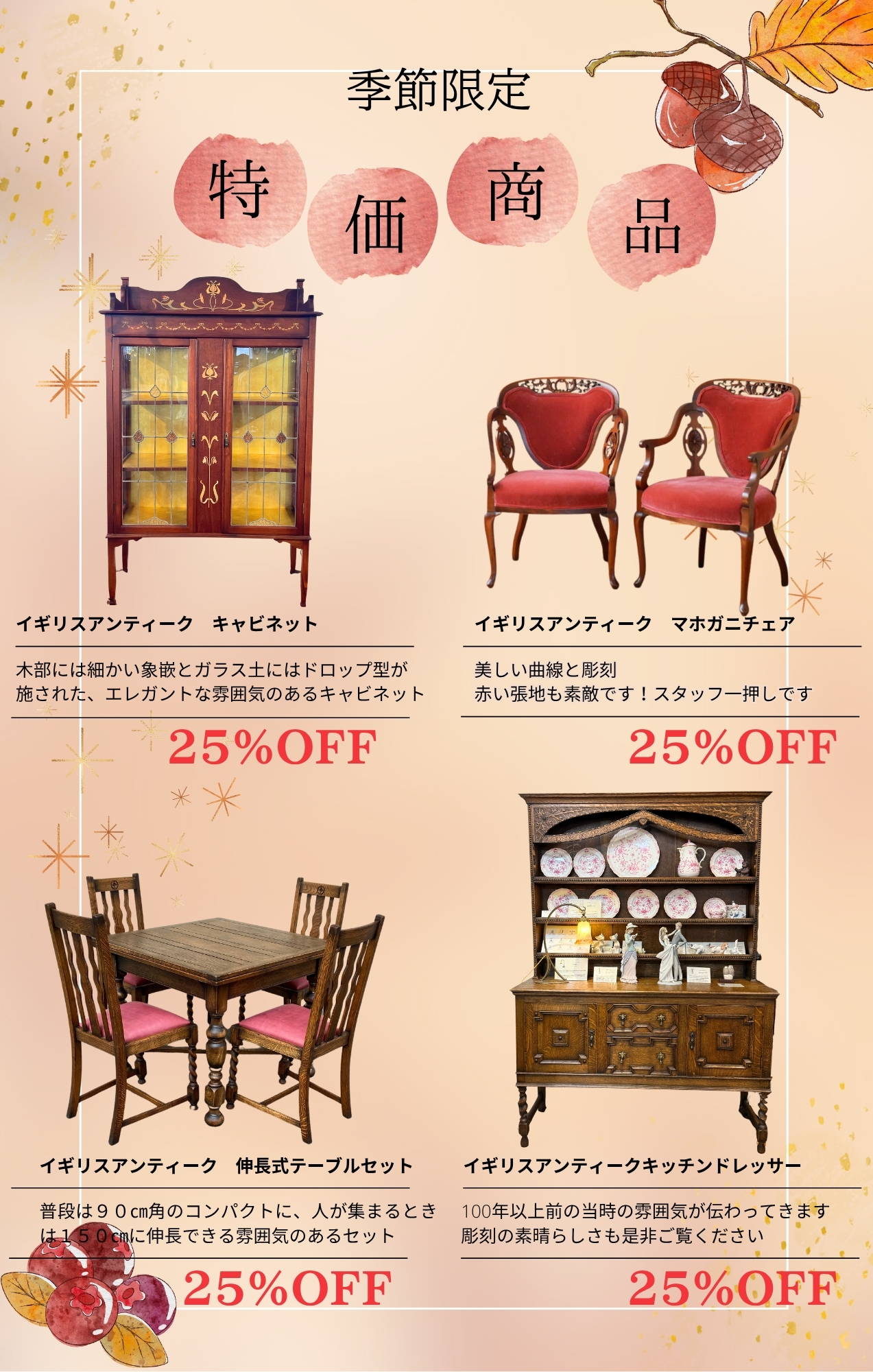 府中家具の館では地域最大級の品揃え約200点もの輸入・アンティーク家具の中から