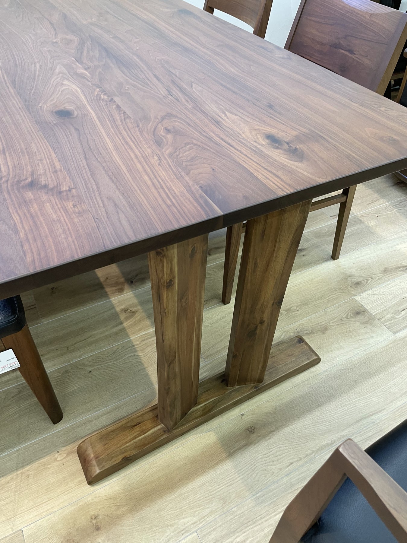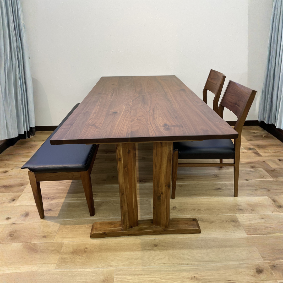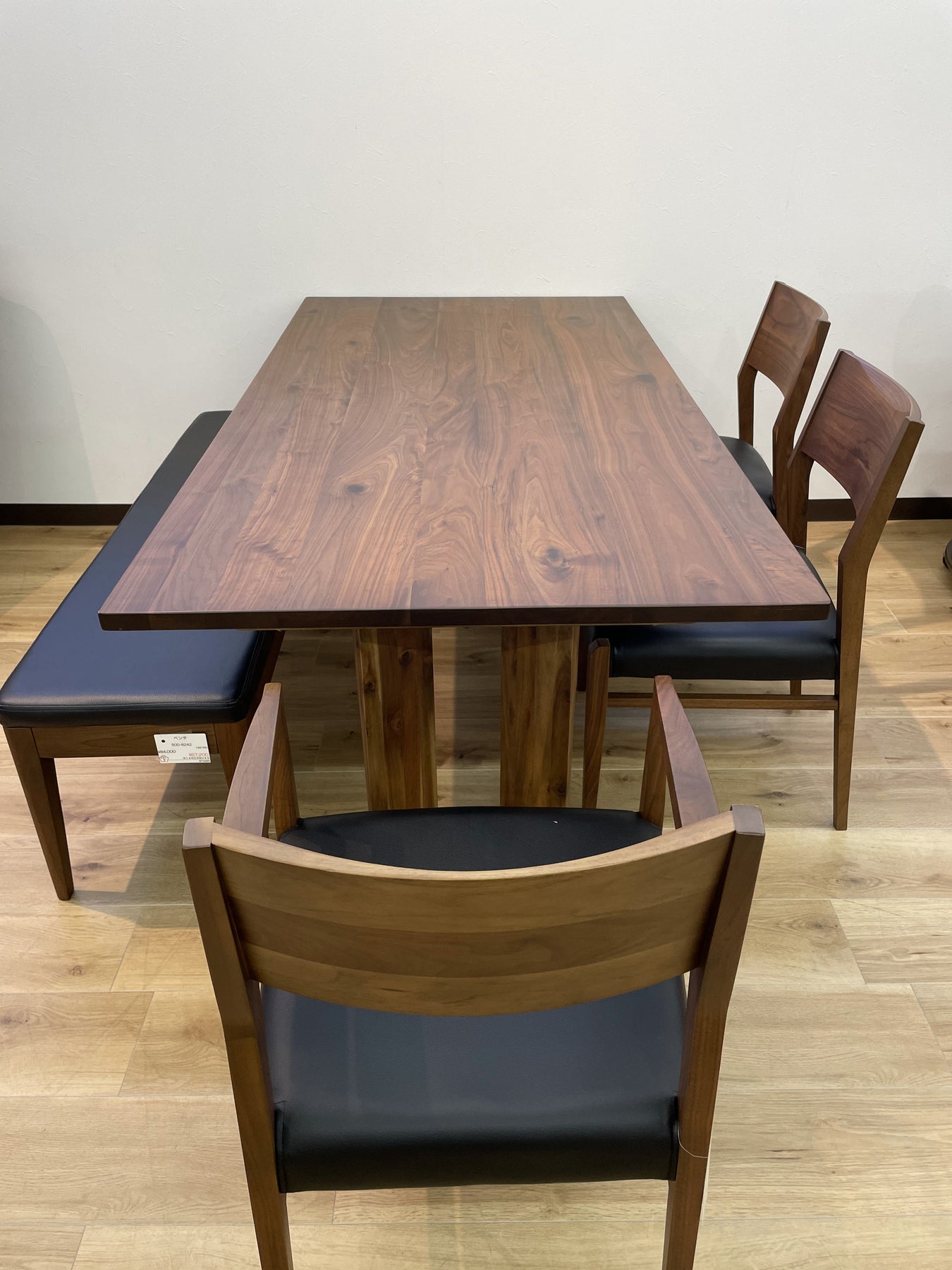 セラウッド塗装により木目が美しいウォールナットのベーシックなダイニングセットです。(テーブル+ベンチ+チェアの4点セット) ダイニングテーブル180cm2本脚:定価260,000円 チェア:定価55,000円 アームチェア:定価64,000円 ベンチ:定価84,000 上質な座り心地と、耐久性に優れたテーブルで、快適で洗練された空間を演出します。毎日の食卓を、ゆっくりとしたリラックス時間にしてくれます。 |