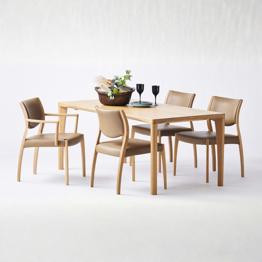 こちらのダイニングセットは、良質な木材選び国内生産で徹底した品質管理を行っている浜本工芸の品です。より良いものを長く使いたい方にお勧めです。もちろん室内環境への最高水準のエフフォースターを採用しており、シックハウス症候群への配慮がなされている、人にやさしい家具となっております。 テーブルのサイズは135/150/165/180/200 塗装色ダークオーク/ナチュラルオーク/カフェオーク 椅子の張地も選べます 食卓5点セット:テーブル165+肘無チェア×4の定価です。 上質な座り心地と、耐久性に優れたテーブルで、快適で洗練された空間を演出します。毎日の食卓を、より贅沢な時間にしてくれるセットです。 |